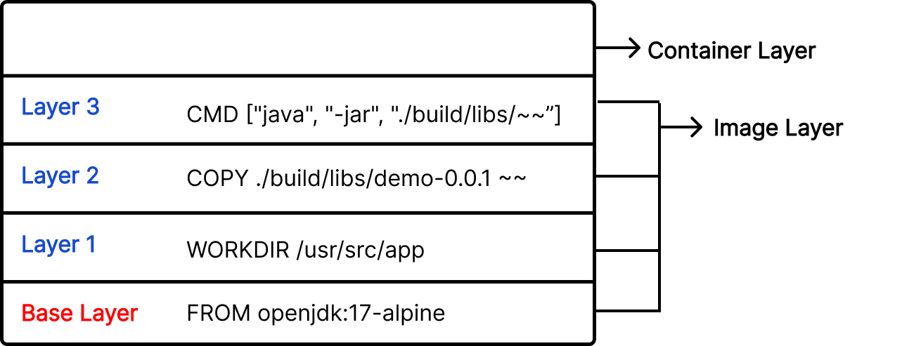 도커 이미지는 빌드시 Dockerfile의 각 명령어들에 대한 레이어를 생성한다.